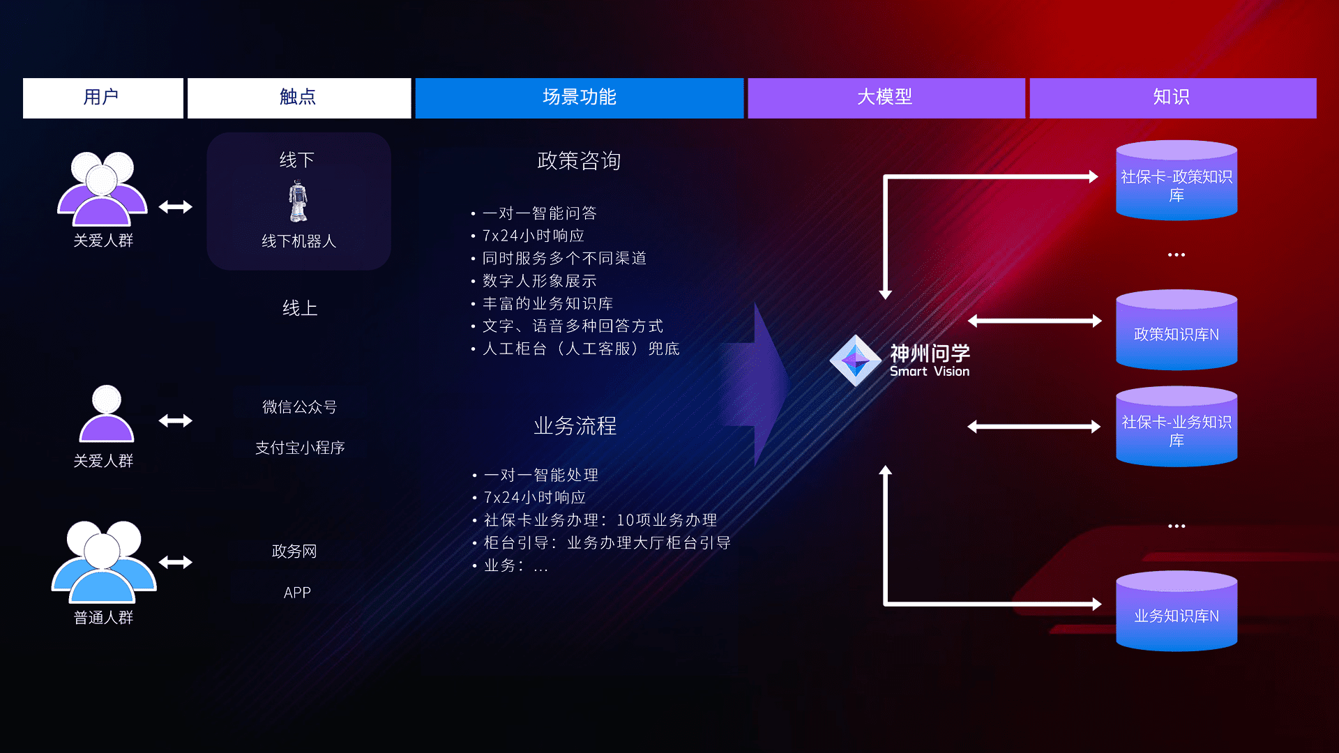 在服务大厅部署客服机器人,,,在线上应用和小程序配置客服数字人,,,724小时为群众解答常规问题,,客服机器人无法处理的,,,转现场人工处理。。。